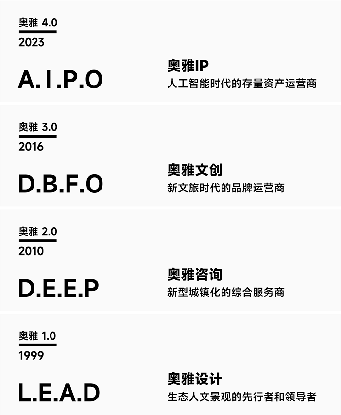經(jīng)過多年的戰(zhàn)略布局與發(fā)展,在李方悅女士的推動下,奧雅股份從一家設(shè)計企業(yè)成功轉(zhuǎn)型成為新銳的輕資產(chǎn)文旅開發(fā)運營企業(yè)。奧雅以“創(chuàng)造更美好的人居環(huán)境”“讓空間賦予生命”為使命,以雙輪驅(qū)動+雙引擎為發(fā)展格局,即創(chuàng)意設(shè)計+親子文旅雙輪驅(qū)動、AIGC+IP雙引擎;經(jīng)營業(yè)務(wù)范圍涵蓋創(chuàng)意設(shè)計、親子文旅、數(shù)字科技等領(lǐng)域,為城市更新、鄉(xiāng)村振興、文化古城等不同場景提供全程化咨詢與綜合運營服務(wù)。在實現(xiàn)企業(yè)價值和理想的同時,解決當(dāng)代中國的實際問題與需求,創(chuàng)造具有地域特色、人性化和充滿活力的新舊城市空間和綜合文化旅游項目。